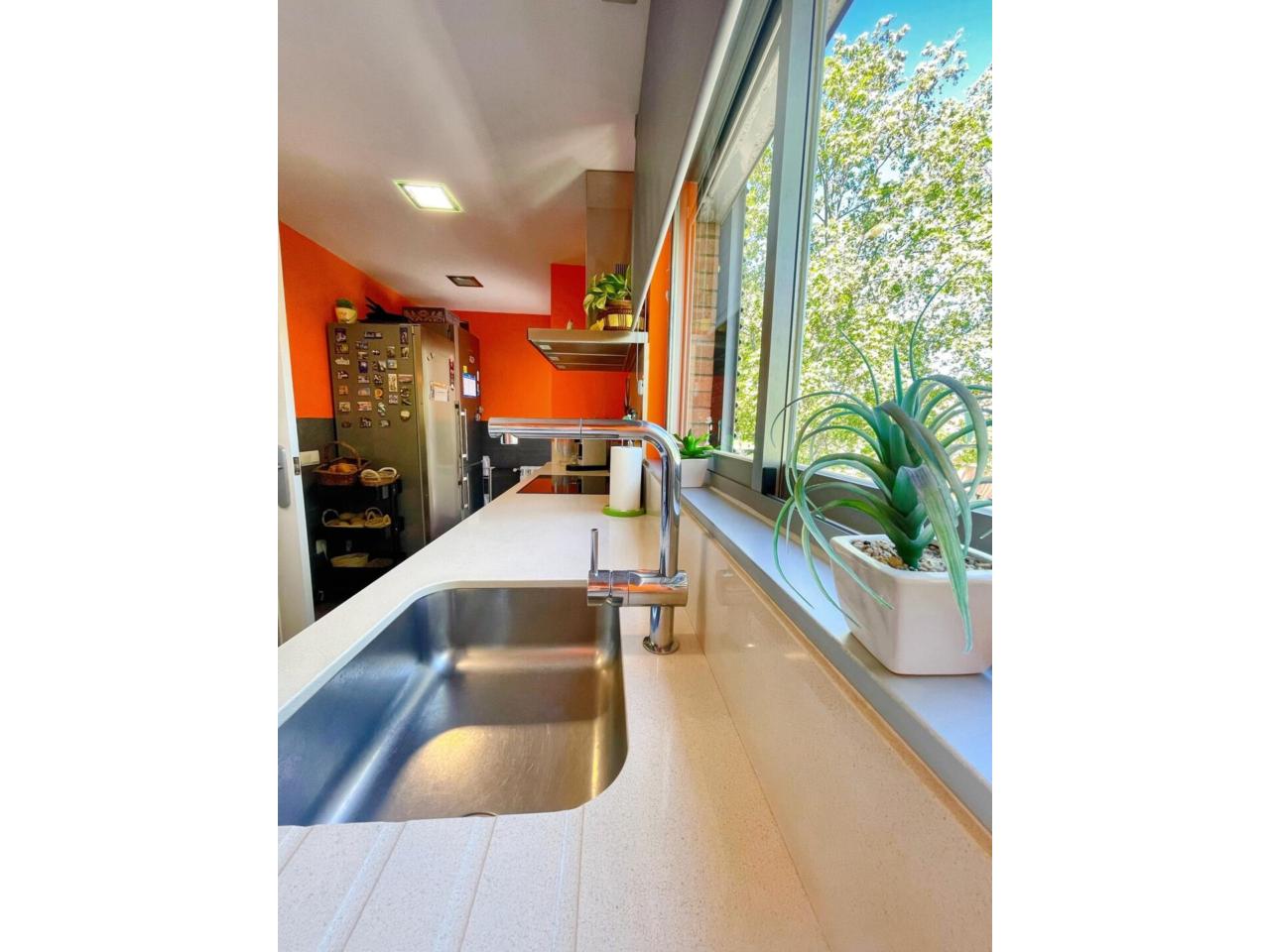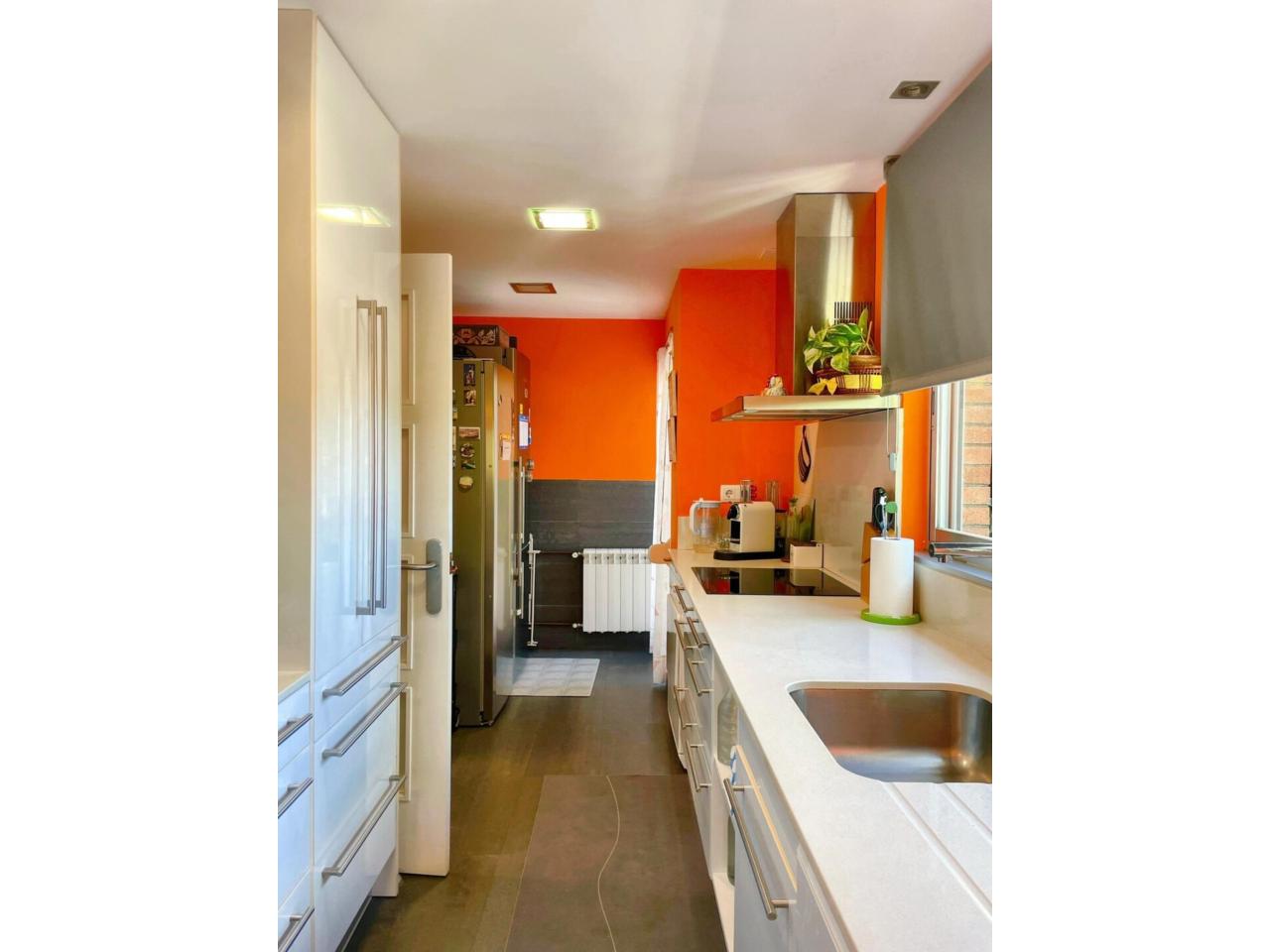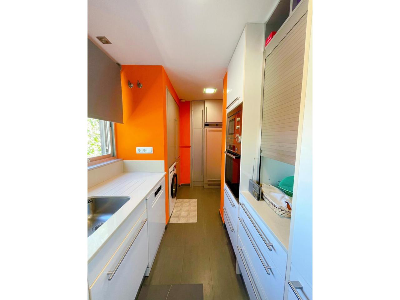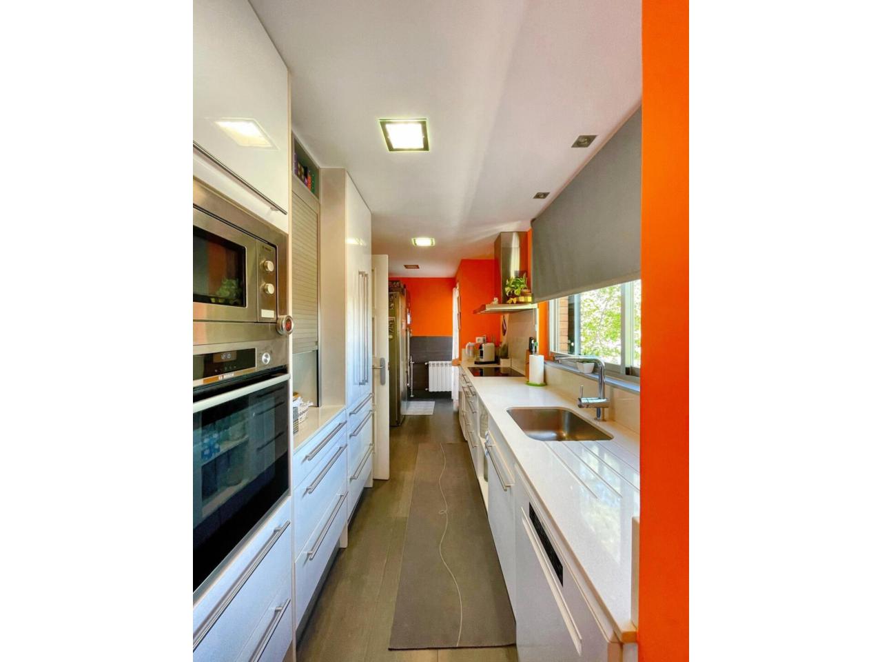 La cocina, recientemente reformada, combina diseño contemporáneo y altas calidades: mobiliario lacado en blanco, encimeras de Silestone y electrodomésticos completamente integrados. Un espacio sofisticado y práctico, con salida a un agradable balcón que aporta luz natural y ventilación.