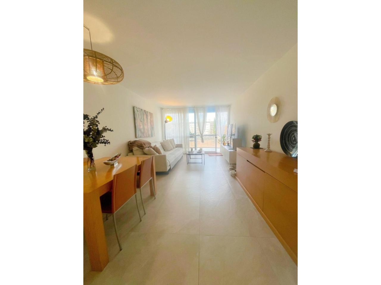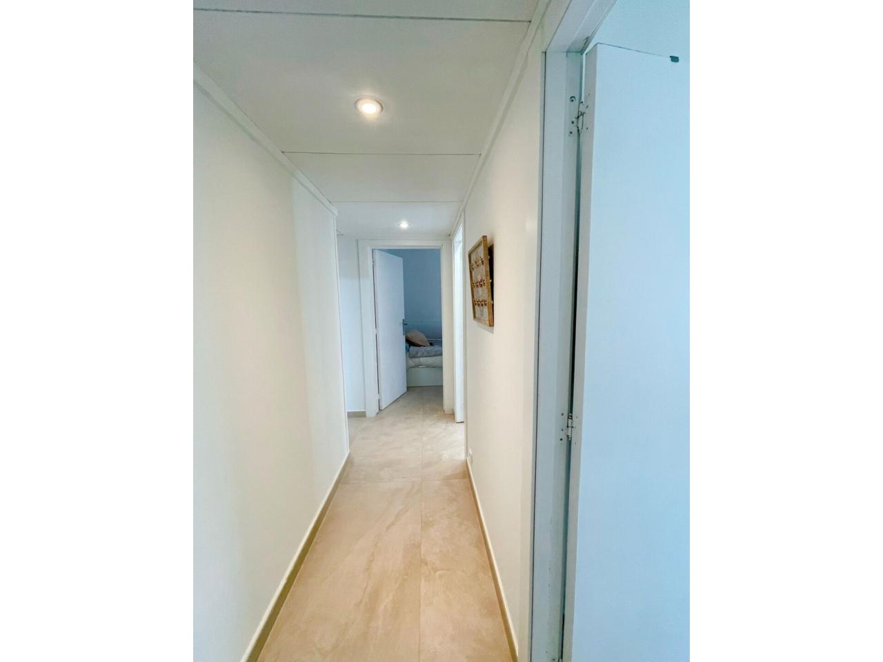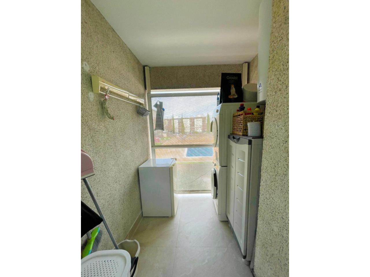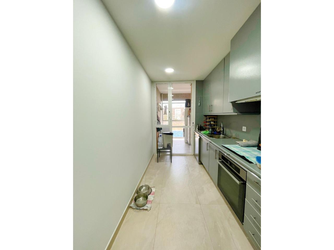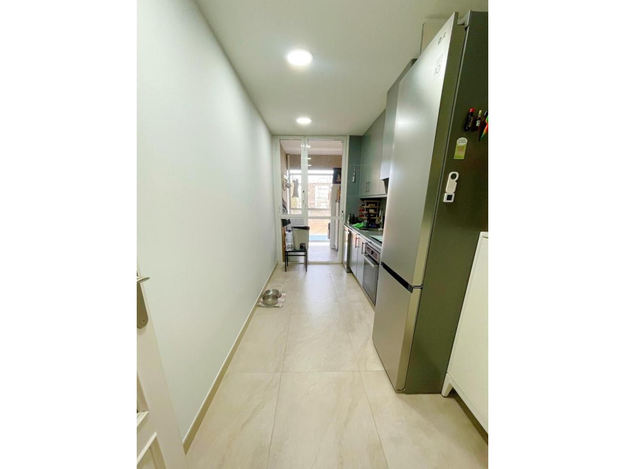 La zona de día ofrece un gran salón-comedor muy luminoso, con aire acondicionado y salida directa a un balcón exterior, perfecto para disfrutar del aire libre. La cocina con mobiliario a una pared, funcional y práctica, cuenta con salida a galería, aportando ventilación y espacio de lavadero.