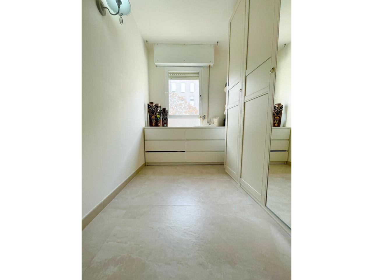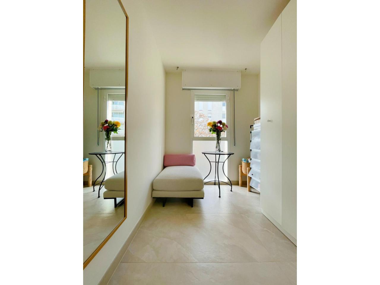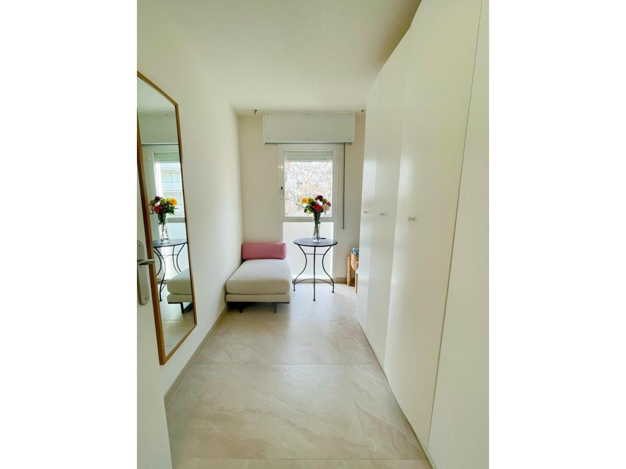 El acceso se realiza a través de un recibidor que conecta con el distribuidor central equipado con un armario empotrado con gran capacidad de almacenamiento.