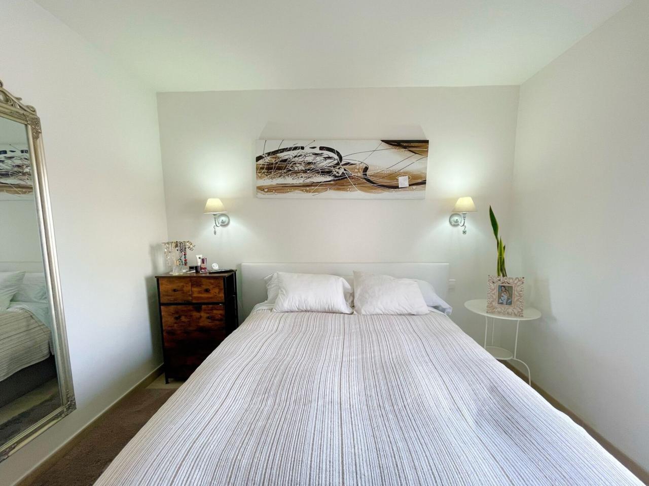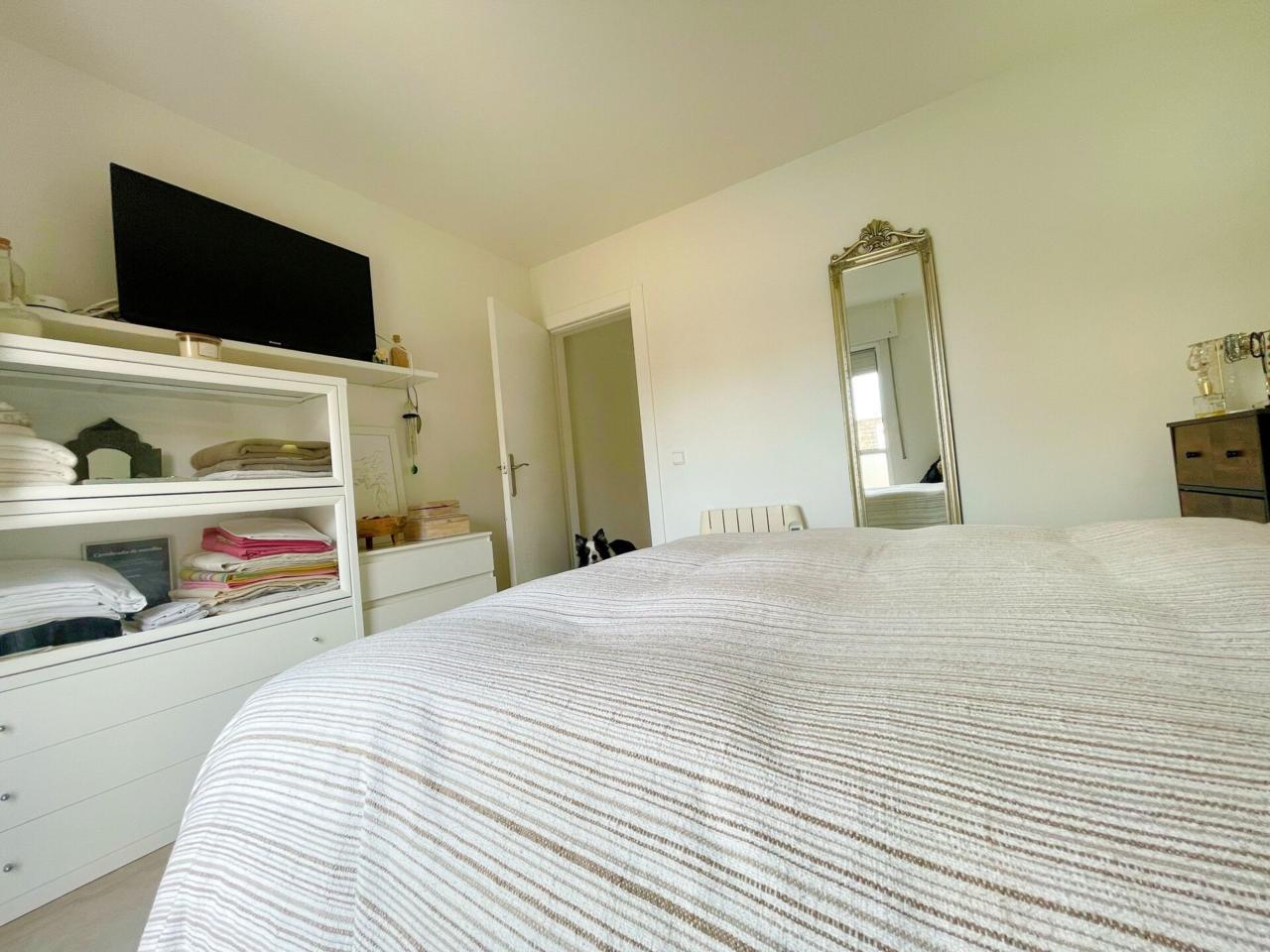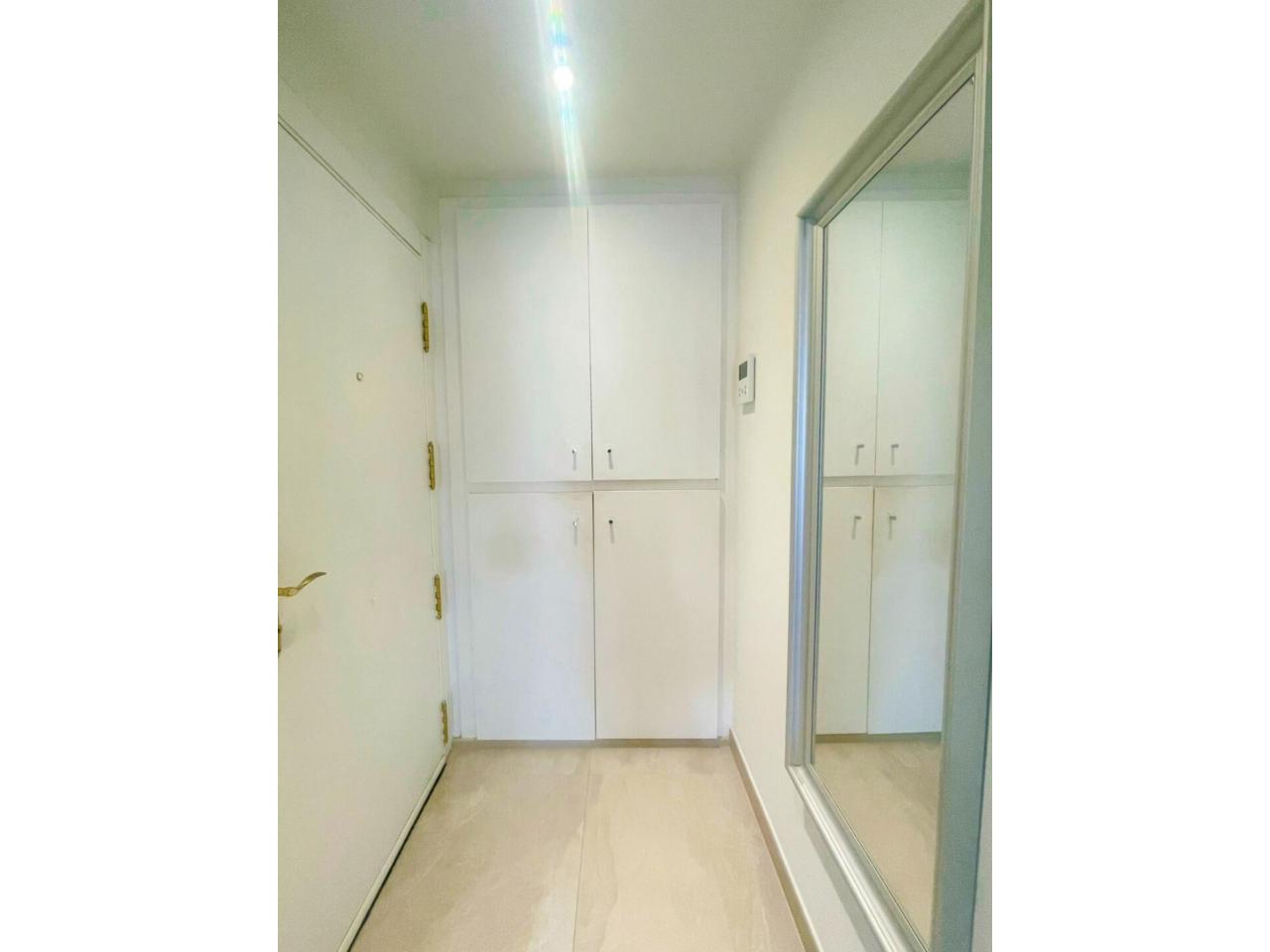 El acceso se realiza a través de un recibidor que conecta con el distribuidor central equipado con un armario empotrado con gran capacidad de almacenamiento.