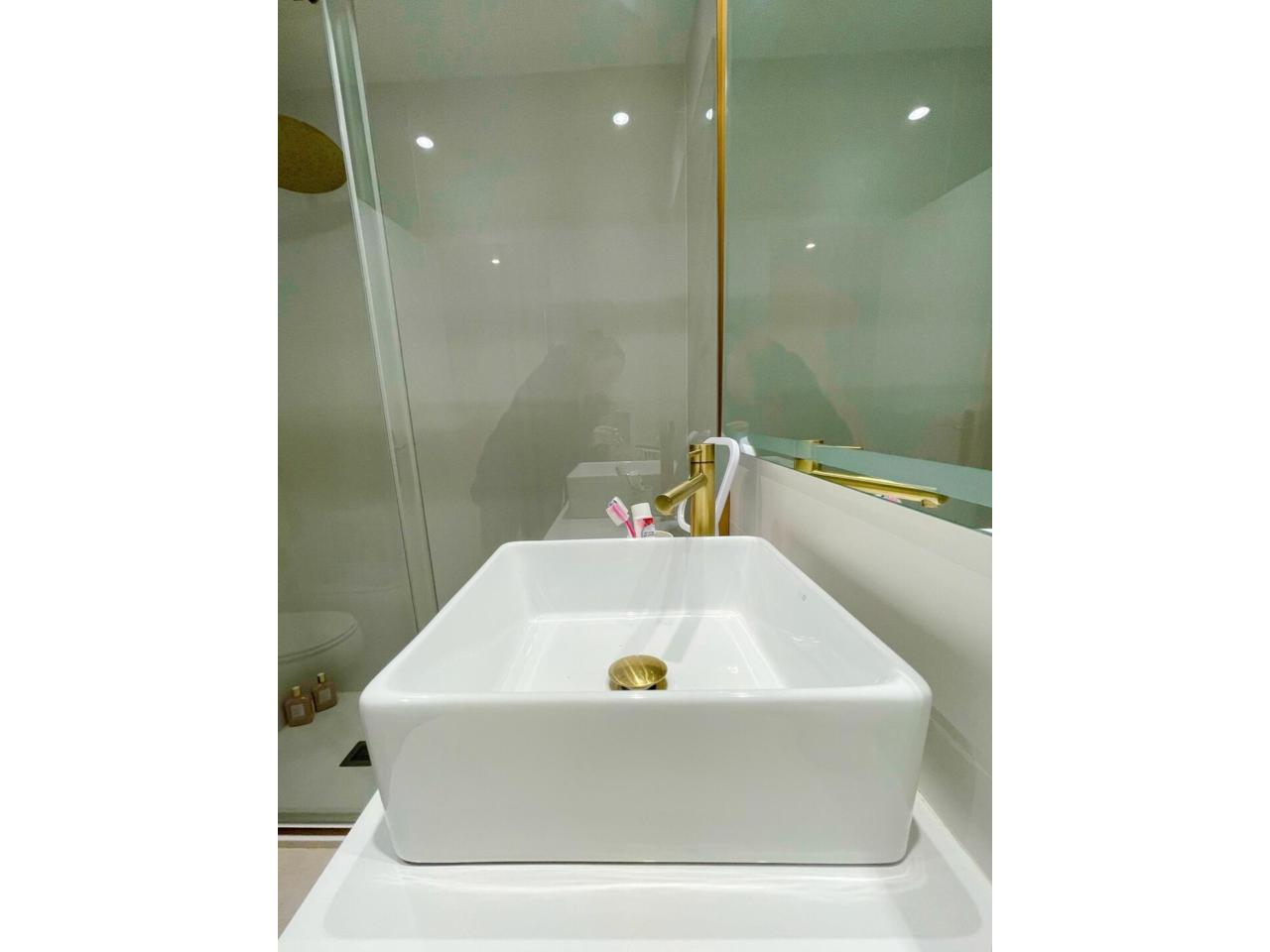 El segundo equipádo con 4 piezas también con plato de ducha y preciosos detalles en tonos dorado y blancos, dando un toque de elegancia al mismo .