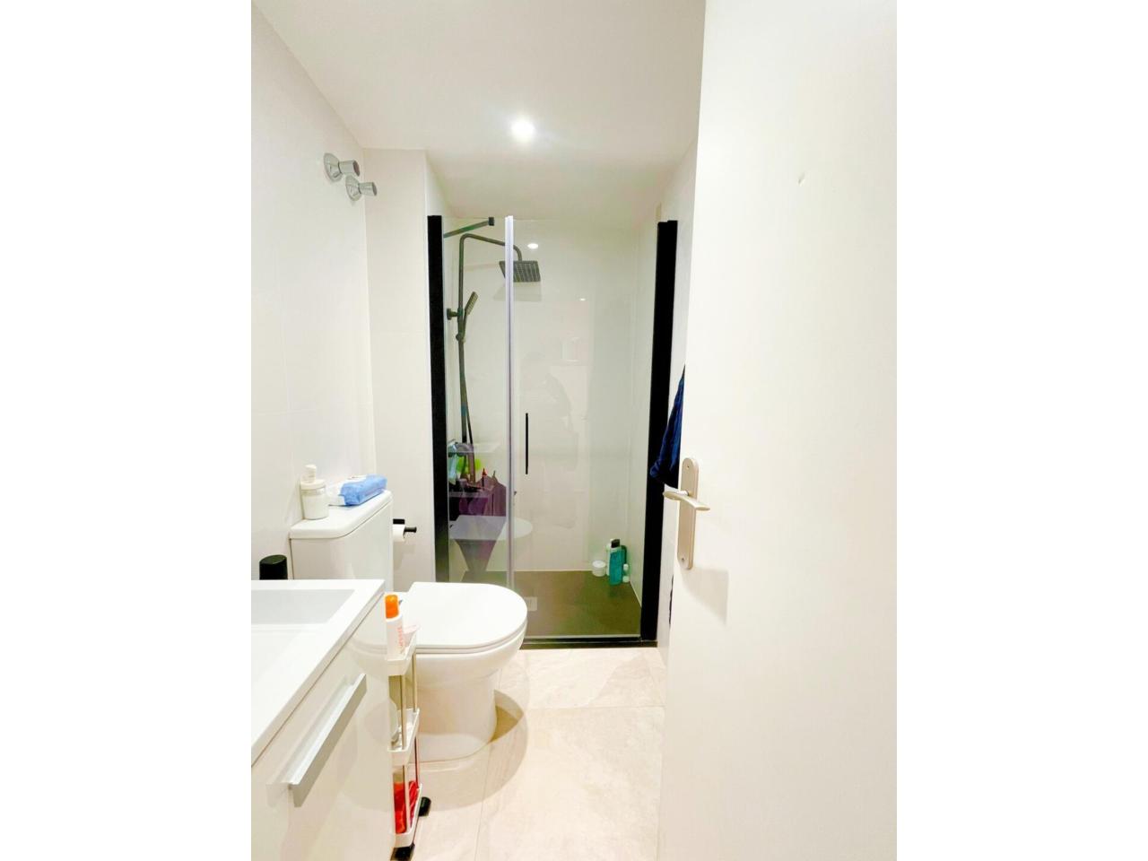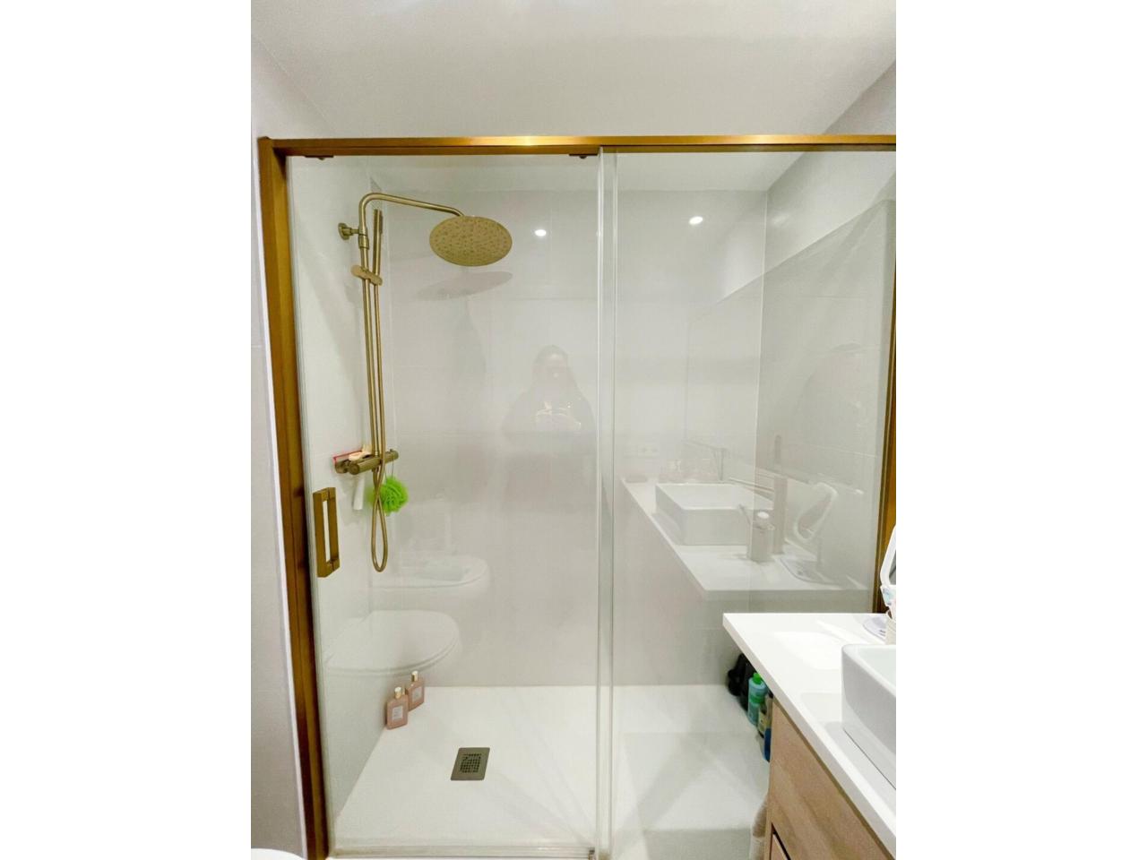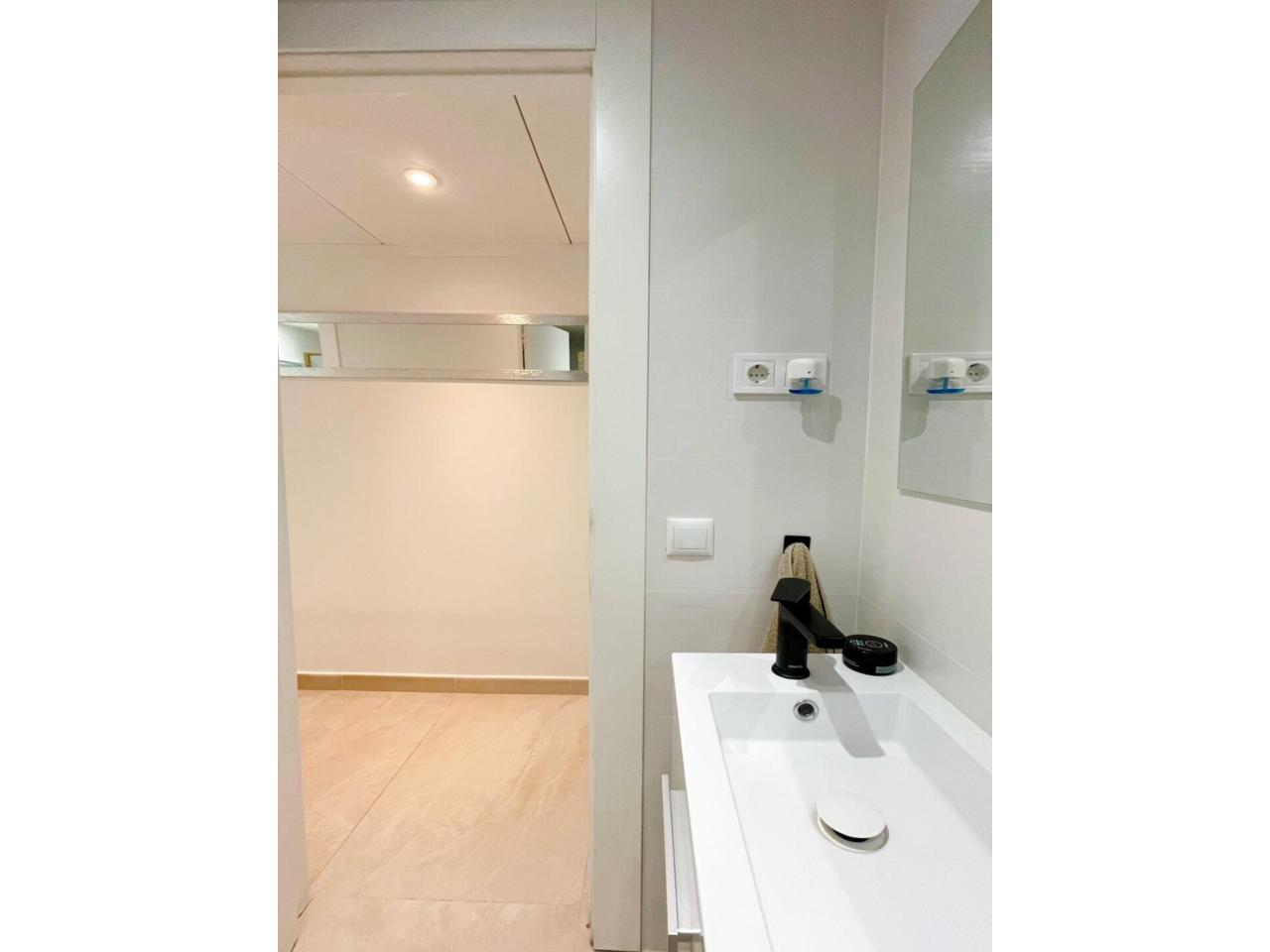 La vivienda dispone de dos baños completamente reformados. El primero de ellos dispone de 3 piezas, combinado unos tonos actuales entre el blanco y el negro y materiales naturales.