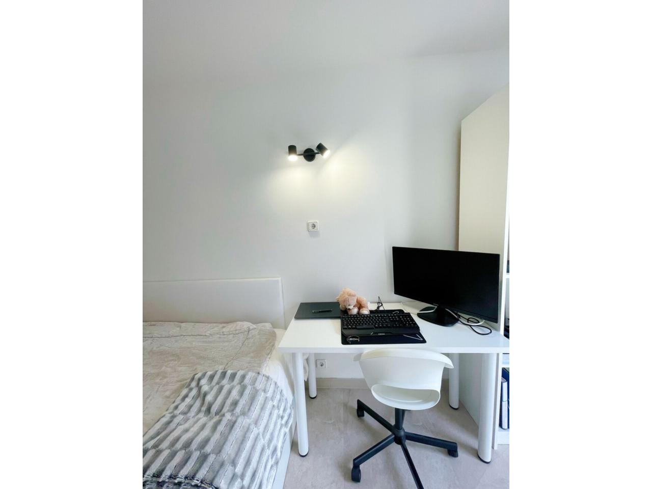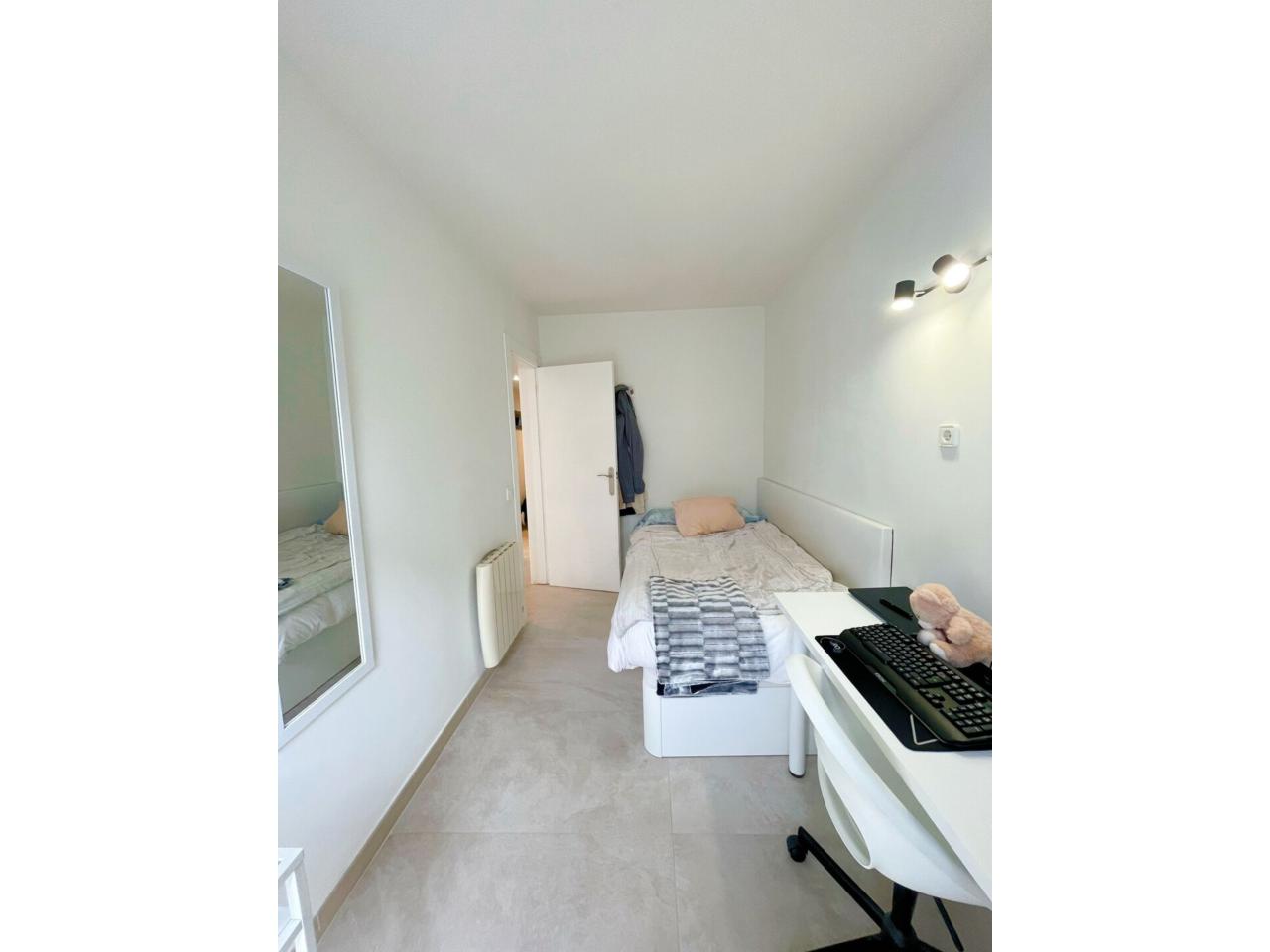 La zona de noche reúne cuatro habitaciones, 2dobles y 2 individuales. La habitación principal se dispone con cama de matrimonio y mobiliario en tonos claros, con ventana al exterior. La segunda habitación, también doble, se presenta amueblada como vestidor. Las dos habitaciones individuales se presentan una equipada con cama , escritorio y librería, y la cuarta como un espacio polivalente actualmente, ideal como una habitación individual, despacho...