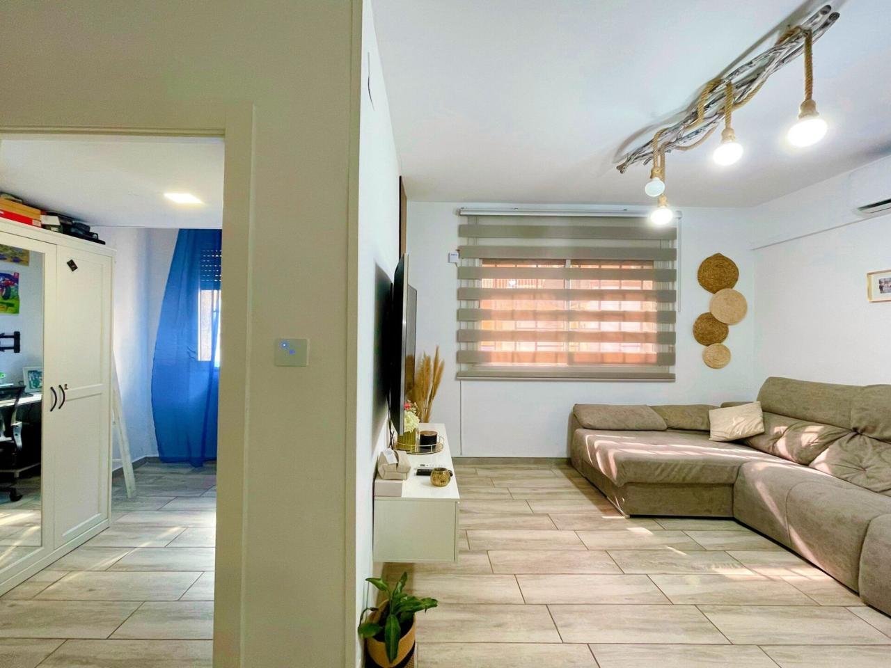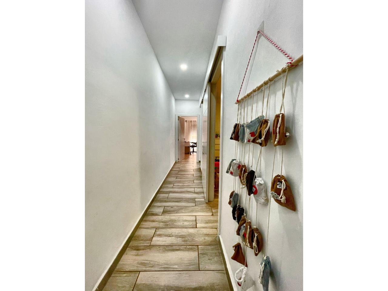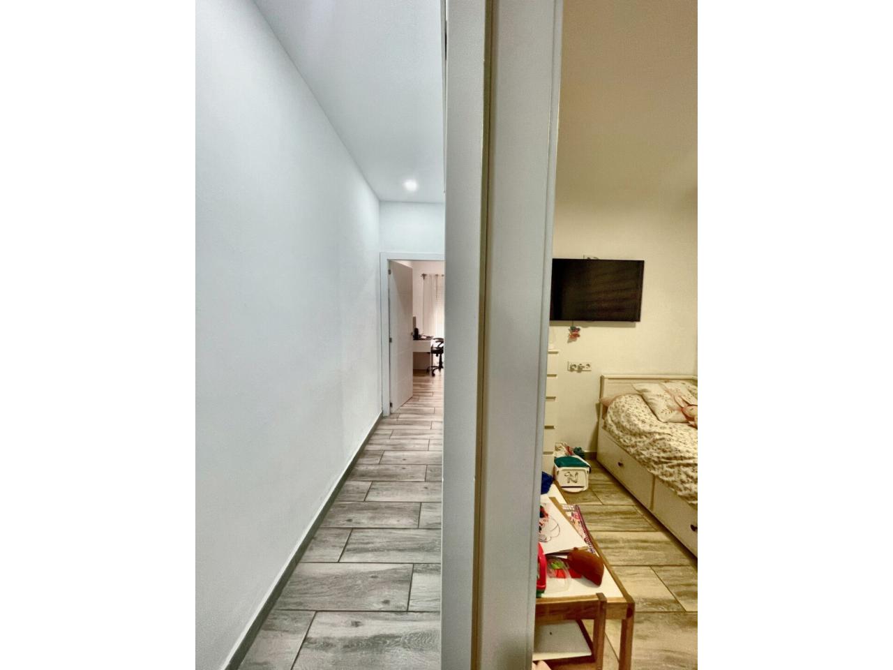 La vivienda dispone de un total de 98m2 construidos según catastro ( aparte la terraza privativa ) Completamente reformada, al entrar a la vivienda te recibe un precioso espacio diáfano donde conecta la cocina con el salón.