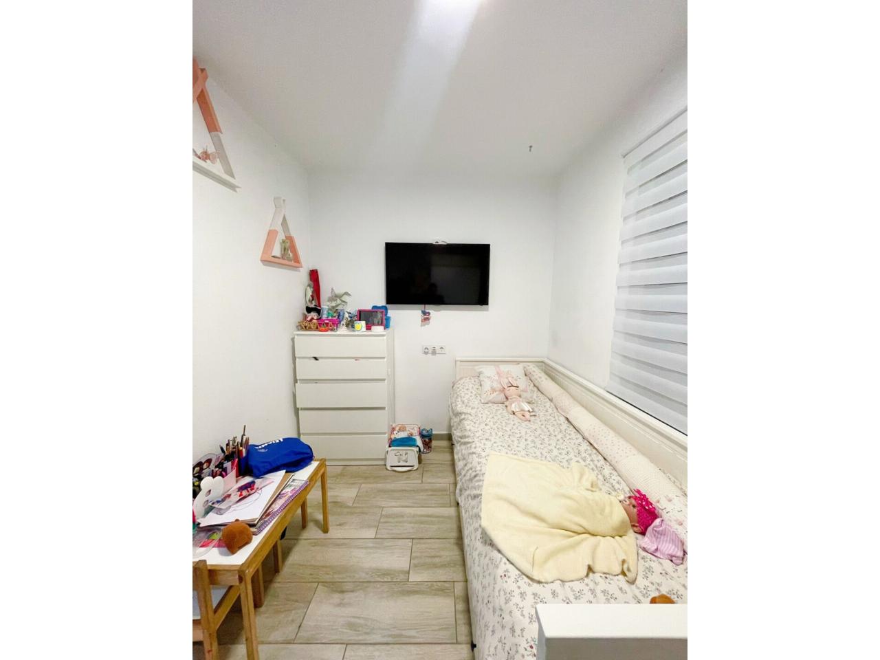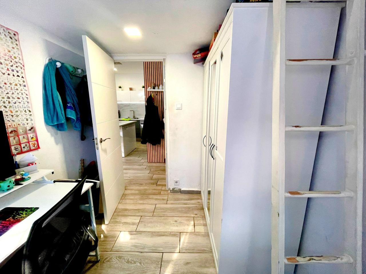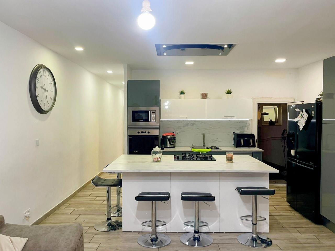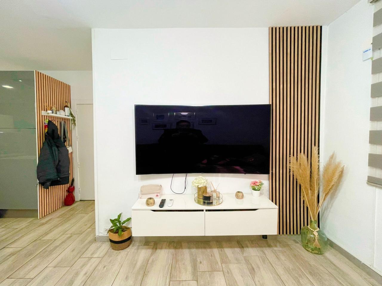 La vivienda dispone de un total de 98m2 construidos según catastro ( aparte la terraza privativa ) Completamente reformada, al entrar a la vivienda te recibe un precioso espacio diáfano donde conecta la cocina con el salón.