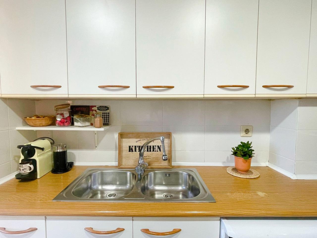 Cocina Office en color blanco y encimeras de madera orientada al este con gran entrada de luz natural. Mobiliario a dos paredes y realizada a medida con gran capacidad de almacenamiento. Adyacente a la misma encontraras una amplia galería con ventanales de aluminio.